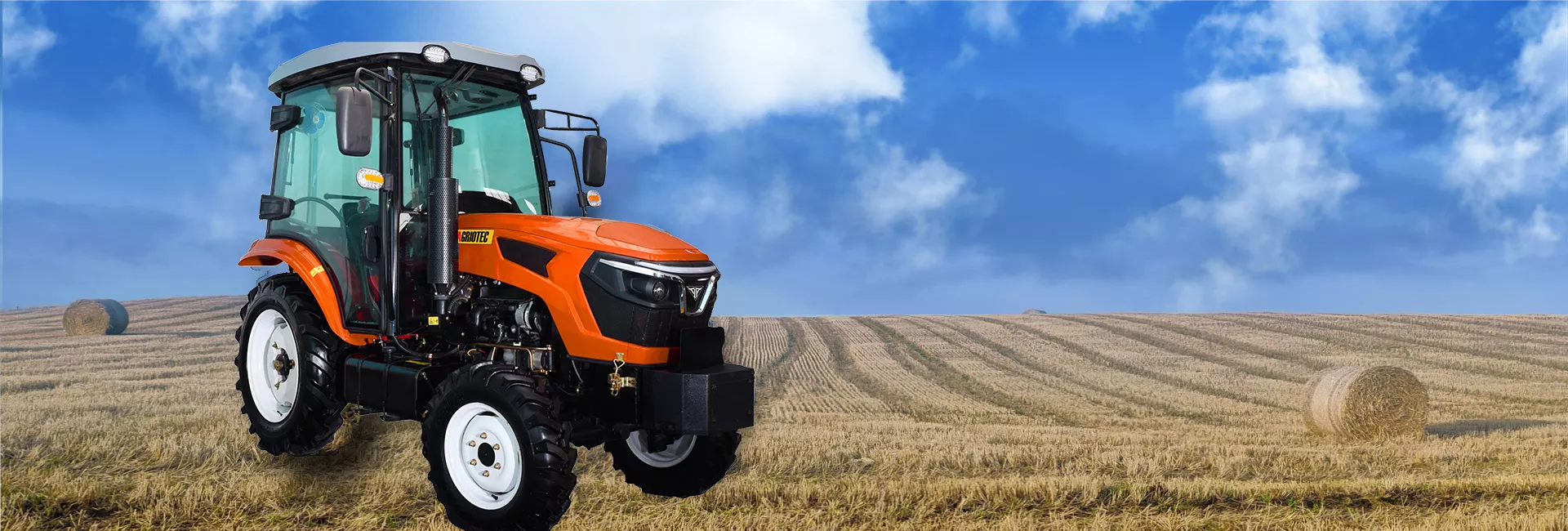 AGRIOTEC tractor match with different kinds of implements as front loader, backhoe, fork, plough, harrow, rotary cultivator., etc